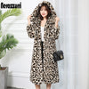 Nerazzurri High quality thick faux fur leopard jacket women with hood leopard print fluffy long fur coat plus size luxury coats from $177.60 $381.60