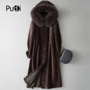 PUDI A18047 women's winter warm genuine wool fur with raccoon fur collar hood winter coat lady long coat jacket overcoat $602.70 $1,205.40
