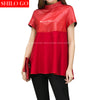 SHILO GO Fashion Street Women Red Turtleneck A-Line Loose casual short sleeves Sheepskin Genuine Leather Blouse Ladies Blouse $342.00 $684.00