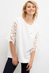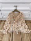 Spring and summer female V-neck lotus leaf lace lanterns elastic horn long-sleeved loose top $317.91 $635.82