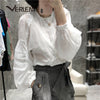 Verlena Loose Oversized Irregular Women White Blouse Long Sleeve Single Breasted Button Drawstring Point Collar Elegant Shirt $318.42 $636.84