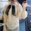WHITNEY WANG 2019 Spring Autumn Fashion Streetwear Vintage Puff Sleeve Colors Contras Bow Lace Blouse Women blusas Shirt Tops $359.40 $718.80