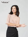 Verlena 2019 Elegant Pink 30mm Thick Silk Women Shirt Boat Collar Half Sleeve Buckle Buttons Casual Blouse Shirts Summer Tops $359.94 $719.88