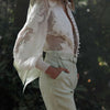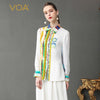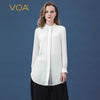 VOA Silk elastic force Repeat Pure white Standing collar Single-breasted splice Long sleeve Simple atmosphere Loose shirt B971 $525.60 $1,051.20