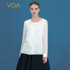 VOA Silk elastic force Repeat Pure white Round neck Long sleeve Minimalism Single-breasted Loose shirt B999 $477.60 $955.20