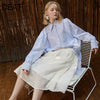 [DEAT] 2019 New Spring Summer Lapel Long Sleeve Striped Personality Split Joint Big Size Shirt Women Blouse Fashion Tide JW69 $362.88 $725.76