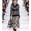 Cosmicchic 2019 Fall Winter Runway Elegant High Waist Pleated Midi Skirt Black White Plaid Mesh Skirt Office Lady Silk Skirts $407.55 $815.10
