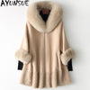 AYUNSUE 2019 Real Fur Coat Women Fox Fur Collar Long Winter Jacket Korean Clothes Wool Fur Coats and Jackets CHQ19-1901-C KJ2514 $356.88 $713.76