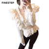 Elegant Blouse White Lace Hollow Out Blouse with Long Sleeves Lace Blouse 2019 Floral Printed Blouse With V-neck Collar $516.24 $1,032.48